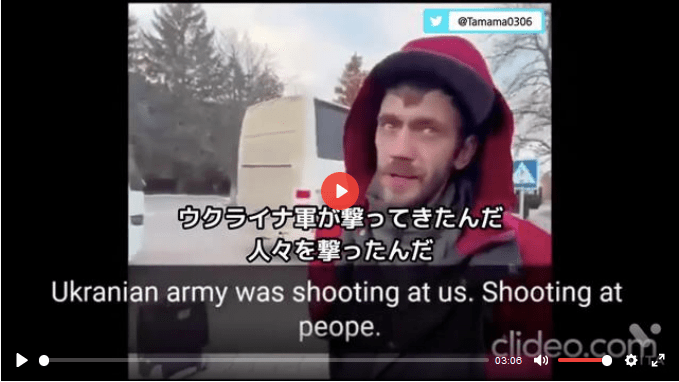 また下のビデオはフランスのジャーナリストがウクライナに来て、自分が今いるところではウクライナ軍によってウクライナ人が殺害されていると話しています。